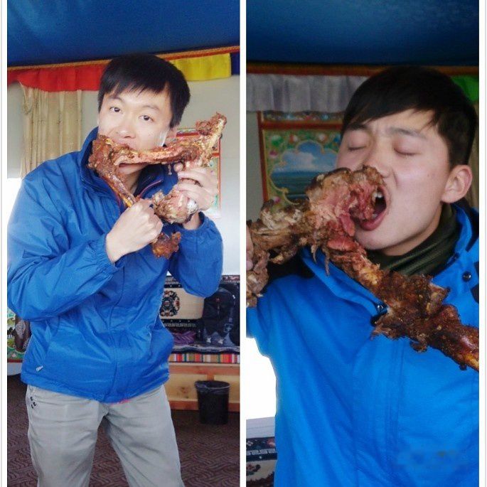 等了俩小时的烤羊腿不负众望,蘸着盐胡椒粉吃够香,够有嚼劲,特色藏面够正宗,还有糌粑,每个菜的味道都是极好哒!奇虎不停用刀削肉,差点跟不上大家吃,真心记不清我到底吃了多少牛肉。这一顿吃的真心爽,喝的真心H!对酒当歌唱出心中喜悦,轰轰烈烈把握青春年华