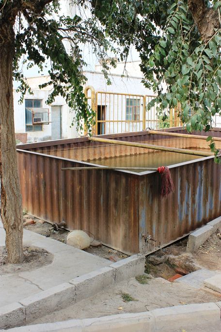吃完饭再路边加油站想洗手没水,沙漠地带缺水,用水是通过一个聚水的大铁柜的龙头来取。