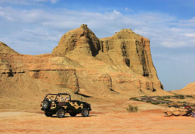 为赶路早上5点就起床了,天还黑着就上路了,沿途又是戈壁荒漠风光,10点40到达景点乌尔木魔鬼城,门票50 元,区间车52 元。