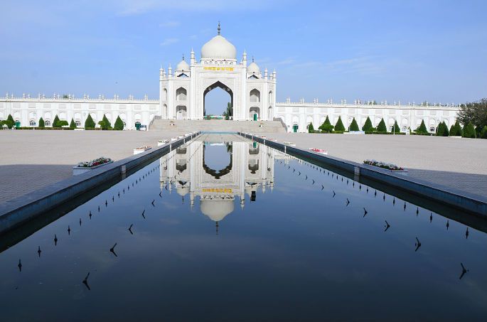 在南门广场坐302路车,直达景区,票价1元,43站,乘车80分钟左右。付款取票,都很方便。此处游客相对多点,主要旅游团来。景区建筑模式传统的伊斯兰风格,非常美丽。302路末班车晚上8点半,