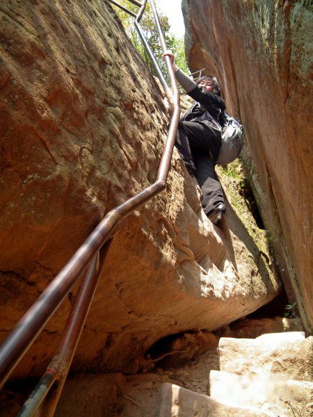 终于到缓坡了,就是上面小白点的地方。脸都红彤彤的了。后面就是阳元石。