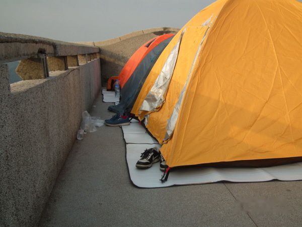 这可是昨夜露宿在此的驴友,特地看日出的,只是今天天公不作美,只好在帐篷里睡大觉了。
