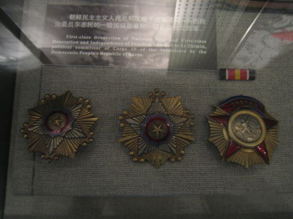 朝鲜民主主义共和国授予志愿军19兵团政委李志民的一级国旗勋章和一级自由独立勋章