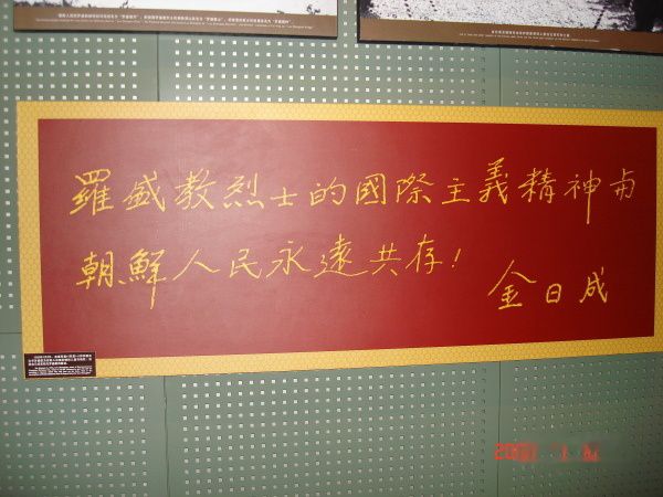金日成为罗盛教烈士题词(金日成早年在中国学习,中文很好,还加入了中国共产党)