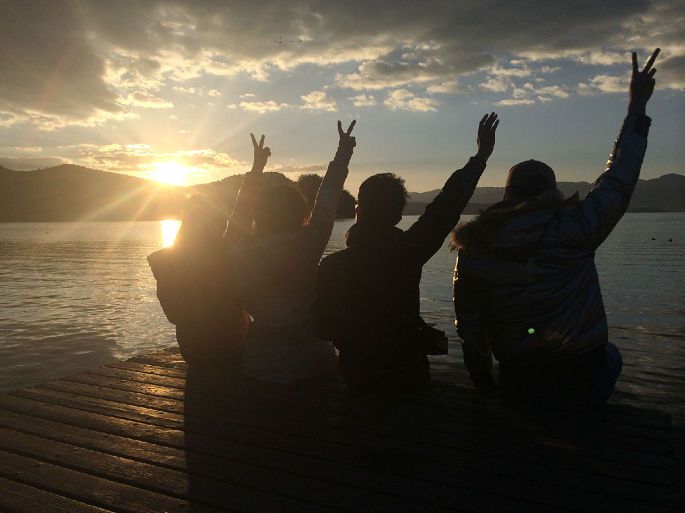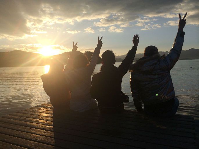 介绍下我的小伙伴们,左至右:可爱的聪聪、事儿多的小姜、小婧(我)、大宝的主人小桠、帅气的大丁。我们一起度过愉快的滇西之行。
