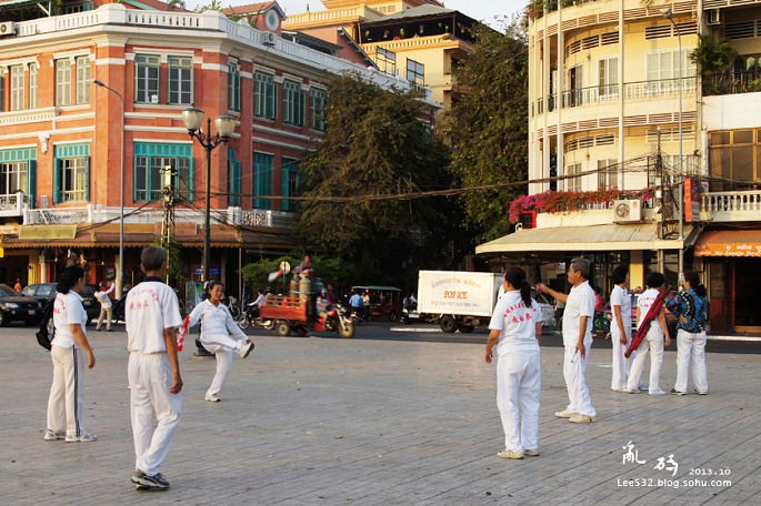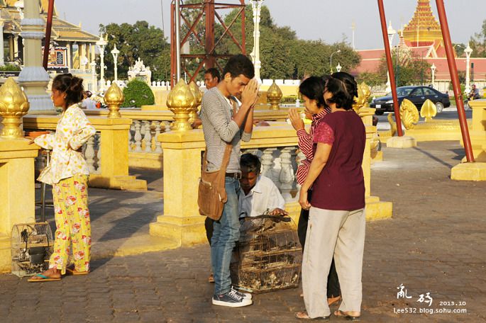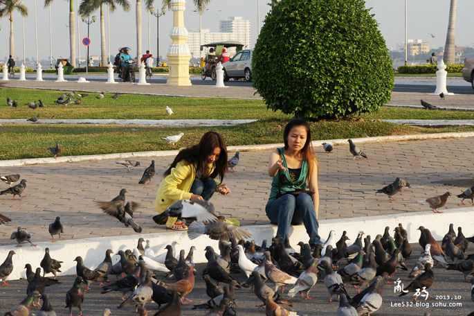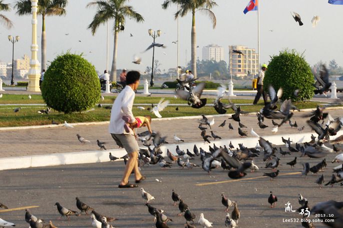 18↑王宫广场喂鸽子的黄衣女生,相貌与先皇西哈努克相似度极高