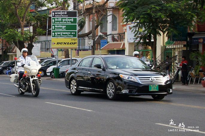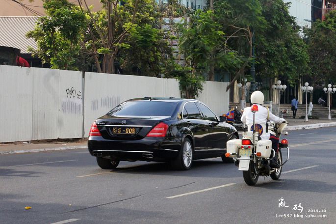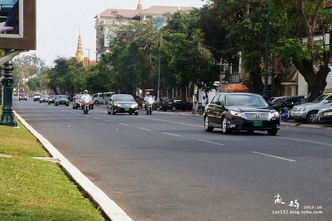 21↑金边街头的豪车也不少,车主们可不是土豪哦,图中第二辆车里乘坐的就是柬埔寨国王诺罗敦·西哈莫尼