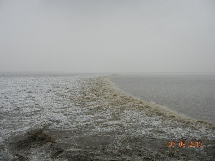 世界三大涌潮之一,钱塘江大潮,天下奇景,这些我在读小学时就知道了,但从未想象哪天能亲眼目睹。2012年的国庆节,我在“西藏小江南”察隅县的一个饭店吃饭时,电视上正在播放中央1台的钱塘江大潮现场直播,身边的藏族朋友都看得很入神,嘴巴里不时发出啧啧称奇声。航拍的效果的确很震撼,我当时就想将来哪一天一定要去钱塘江边走一走,中国的大江大河——长江、黄河、珠江、湘江、怒江、金沙江、澜沧江,我都去了,下一站也许就是钱塘江了吧……