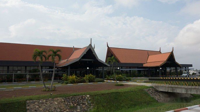 昨天在皇宫和那个tuktuk司机砍价的时候,就把今天从旅店到机场的车也一起预约了。今天的飞机比较早,8点20飞,所以5点20就起床了。6点退完房出来,司机已经准时的在门口等着我们了。之前听说柬埔寨人非常守时,这趟旅行看来,还真是如此,除了Giant Ibiz的接客车晚点,不过也可能是客人晚点,接客车等客人。旅店到金边机场车程30分钟,我们预约的价格是6美刀。途中穿过金边的中央政府办公大楼,不懂是不是应该叫做国务院,那块区域的环境和路都不错。