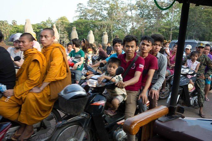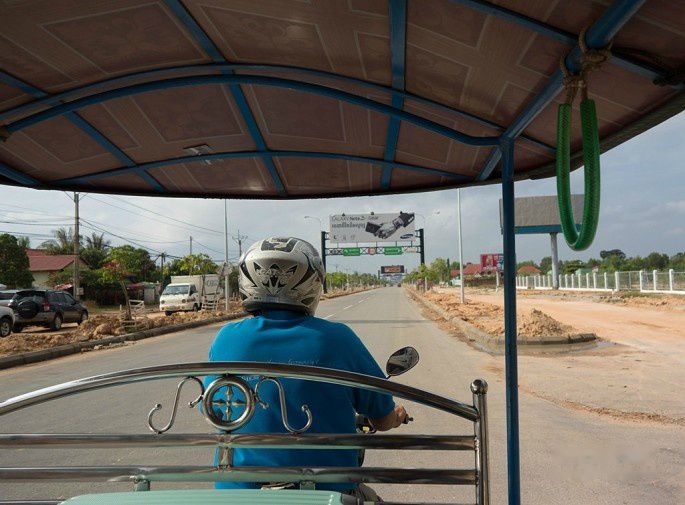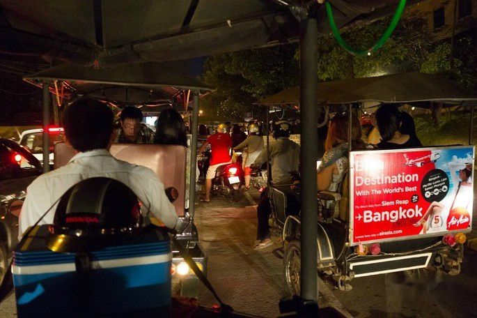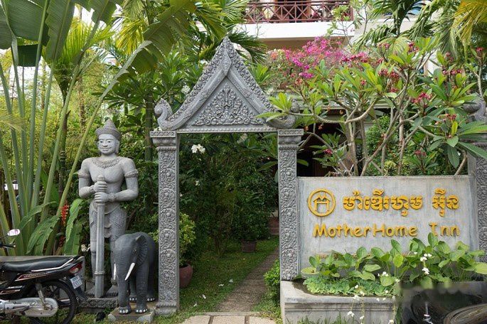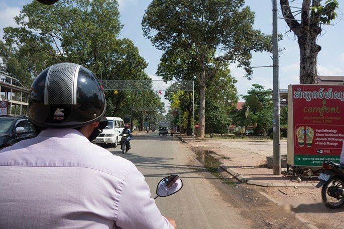 出了机场,预约好的MontherHome Inn派tuktuk车来接,司机会举牌在出口等候,这个服务是免费的,算在住宿费里。机场有大路直接到暹粒市区,于是直接上车奔向酒店,大概30分钟车程。