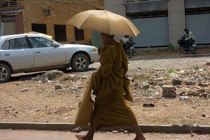 步行的僧侣。柬埔寨主要是上部座佛教,其实也就是相对大乘佛教的另外一派,也叫小乘佛教,但是小乘带有低下之意,还是称为上部座更合理。