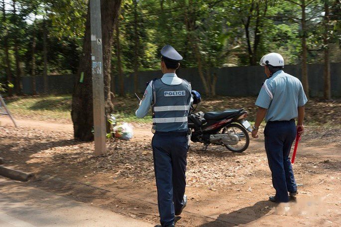 还看到了交警叔叔。据说在柬埔寨,交警是收入比较高的职位。不知道是不是因为有灰色收入,传闻柬埔寨政府的腐败程度相当大,穷国好像都这毛病。不过对外国游客没什么影响,只是在边检上小小体现了一下。
