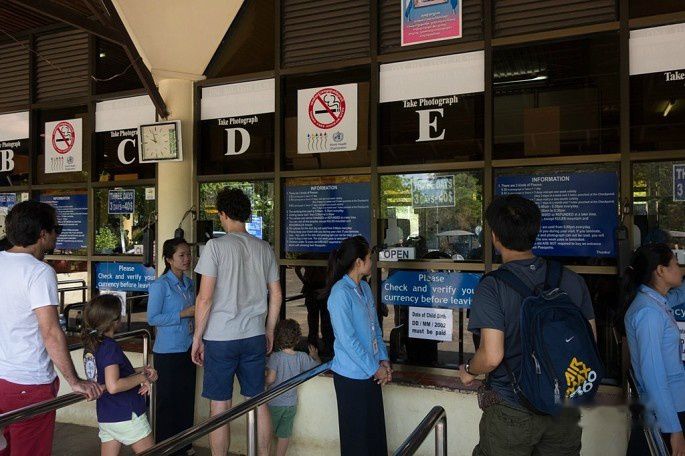 一进机场大堂就是办签证的地方。2014年3月30日开始,中国公民赴柬埔寨旅游可以办理落地签,只可惜好消息来得太晚,我之前已经委托旅行社办好的签证,多花了100多一个人。