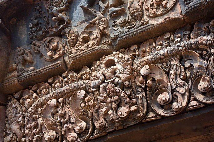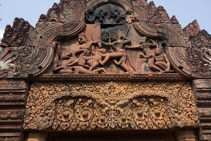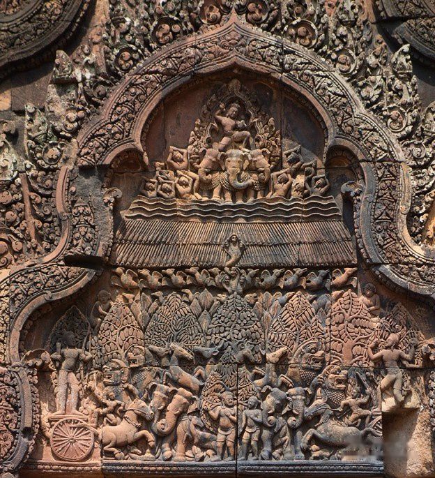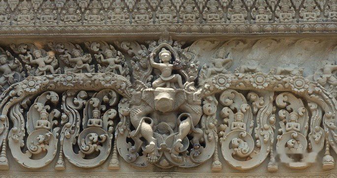吴哥艺术中,门楣、三角楣、门廊和石柱都是非常重要的表现载体,一定要注意细细欣赏。