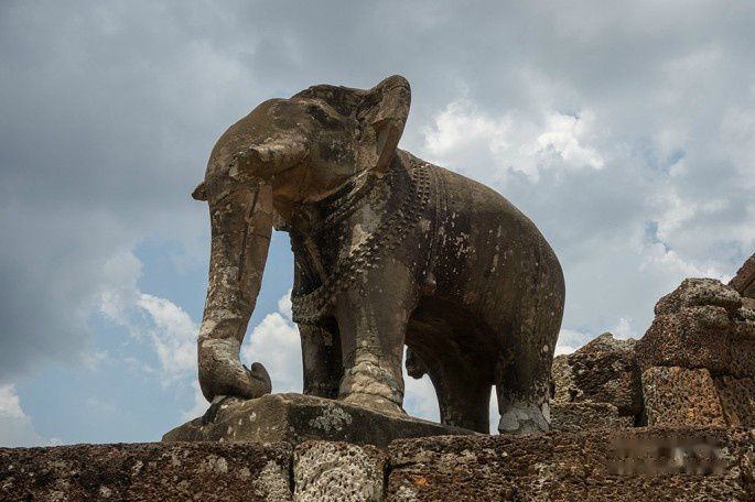 东梅奔寺最有特点的还是四个角上的石象,很大的石象。