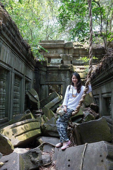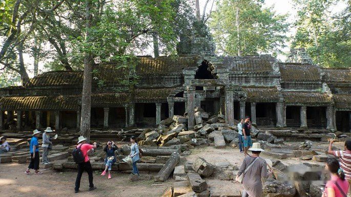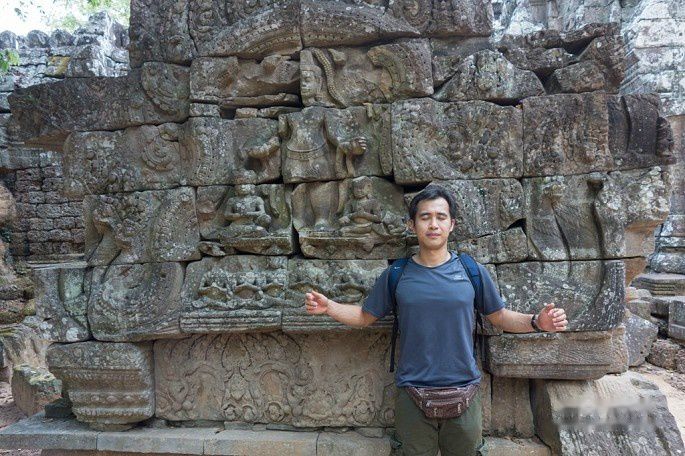 塔逊寺的一角,这部分还没有修复,算是原汁原味了。那么大一块石头,真不知道千年之前,吴哥人是怎么搬砌的。