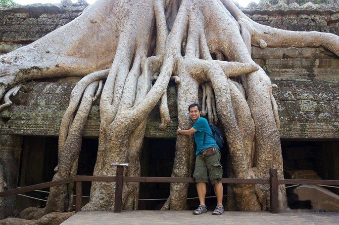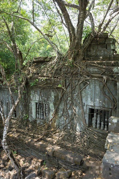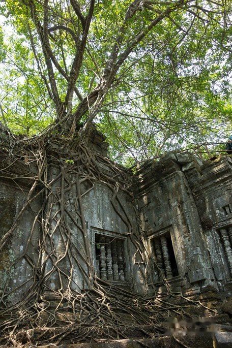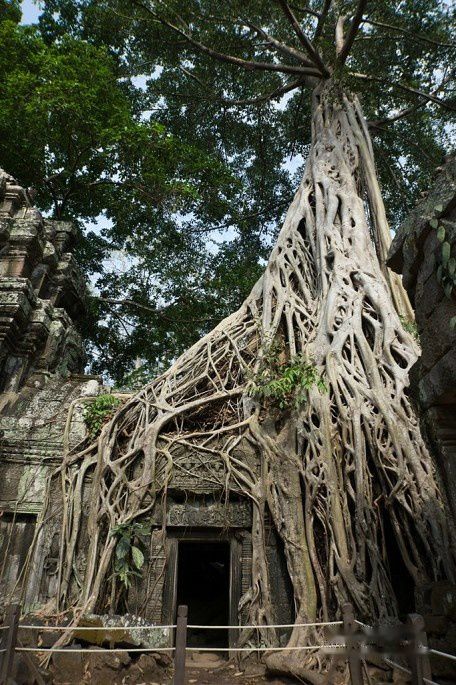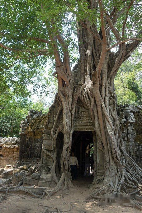 石树一体,是吴哥古庙的一大特色。后面还有很多景点有这类景观。一般是木棉树和榕树,这张的是绞杀榕。