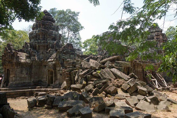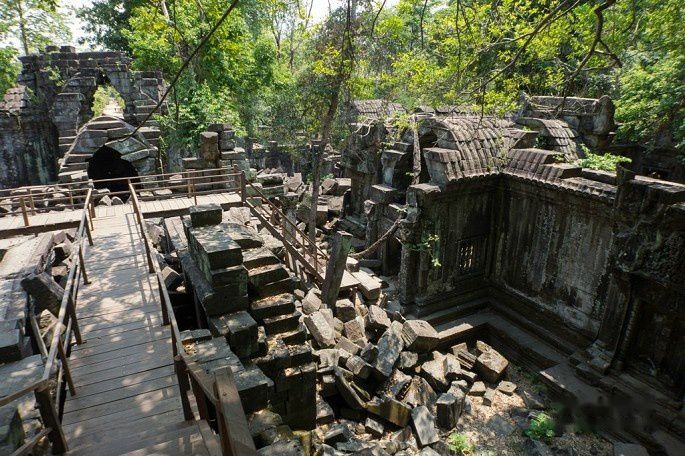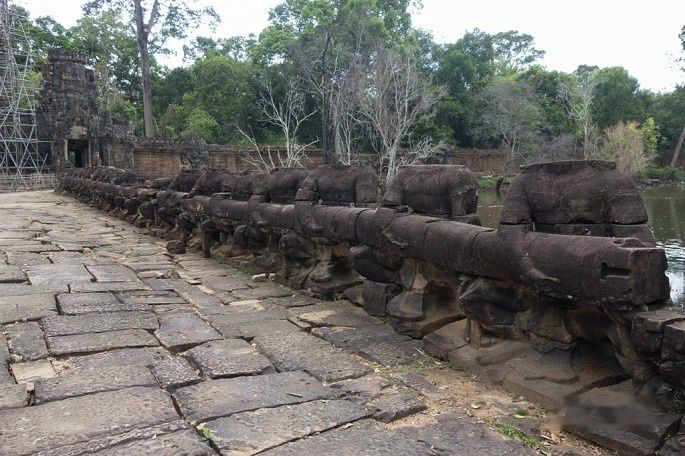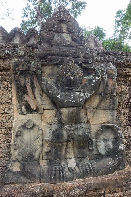 阇耶跋摩七世的继任者,阇耶跋摩八世,回归印度教湿婆信仰,并开展了毁佛行动。北门就有明显的毁佛行动的后果,佛像头都被毁了。