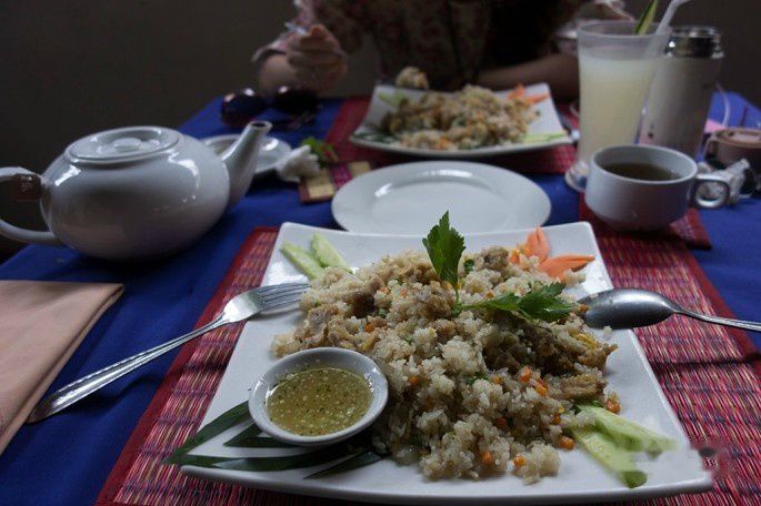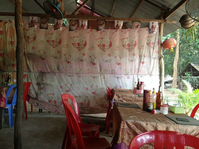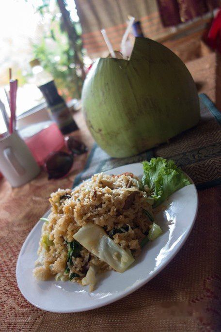 司机带我们到龙蟠水池(Neak Pean)景点旁边休息区吃的午餐,猪肉炒饭,味道还不错,但环境相当一般,类似路边摊吧,很简陋。不过价格着实不便宜,要6.5美刀一份,椰子汁1美刀一个。顺便说一下,司机一般不跟你吃饭,因为景区吃饭比较贵。我们觉得不好意思,这天请了司机一起吃饭。但实际上把请司机吃饭的钱当小费给他们,他们会更高兴。因为据说同样饭菜,买给外国游客的价格,是卖给当地人的5-6倍。