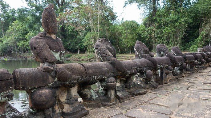 龙蟠水池也称为盘蛇寺,和圣剑寺同期建造,是人工蓄水湖阇耶塔塔迦的主寺。据说盘蛇寺是阇耶跋摩七世兴建的平民医院之一,主池底生长着草药,具有神奇的治疗效果。建议游览时间30分钟。