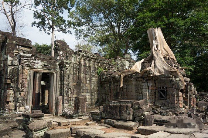 Preah Khan意为圣剑,圣剑寺建于1184年,是阇耶跋摩七世击退占婆人入侵凯旋后,献给自己父亲的寺庙。值得一提的是,阇耶跋摩七世崇奉佛教,圣剑寺内的神像和艺术处处可见佛教和印度教相结合的表现形式。圣剑寺很漂亮,也比较大,可以慢慢游览欣赏,建议至少1个半小时,2小时为宜。