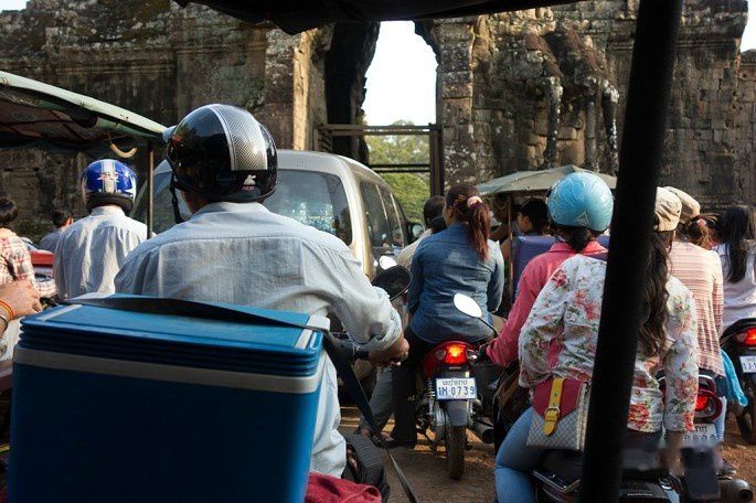 简单洗漱完毕,按计划开始走大圈。乘坐酒店提供tuktuk,包车,15美刀一天。司机会说一些英文,勉强可以沟通。tuktuk上也放了一张英文地图,比较方便交流,看来这哥们还是花了心思的。