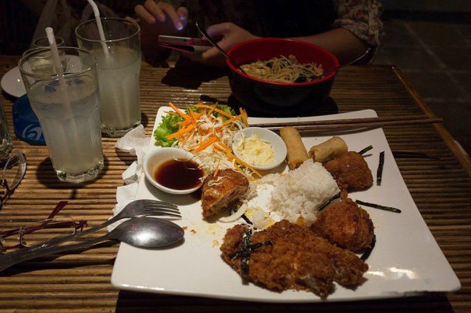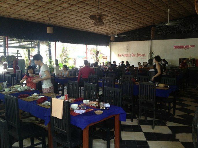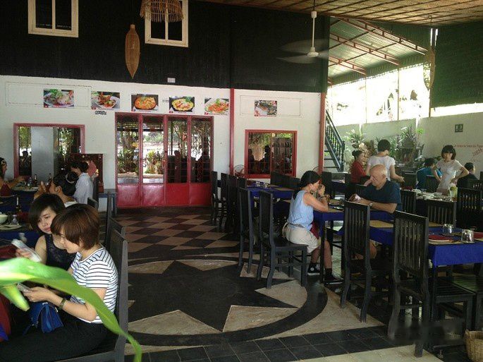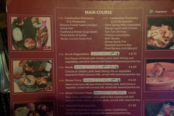 我们让司机带我们去买了点明天早餐的面包,然后就回旅店了。洗完澡出来吃饭,走了一圈还是走到早餐的那家名为Sebstian的餐馆吃。明天一早就离开柬埔寨了,我们俩决定今晚吃好点,于是点了不少,把老板娘吓到了