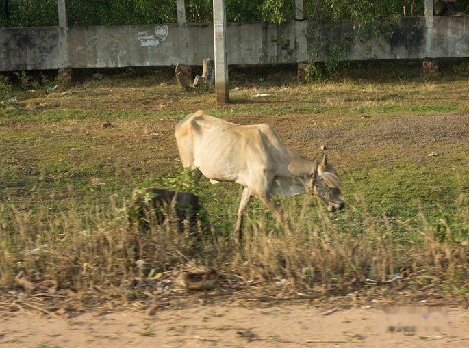 也许是物质条件或气候的原因,我们这次看到的柬埔寨的牛都很瘦,瘦骨嶙峋的,肋骨一条条,让人好心疼。