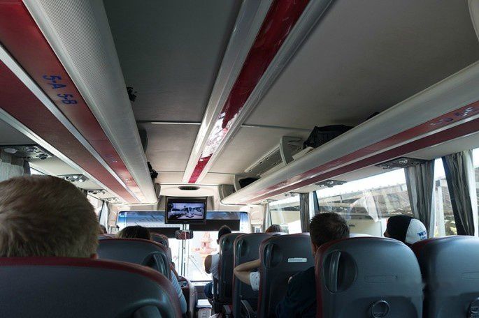 Giant Ibiz的大巴车况还不错,座位很宽敞,反正比国内所谓的豪华长途大巴宽敞,令我大吃一惊的是:车上每个座位都有插座!而且车内一直都有wifi!这可让我这个中国来的土老帽大开眼界啊。车上每人发一瓶矿泉水和一个面包,发的面包是法式羊角包,烤得非常香,相当好吃!不亏曾经是法国的殖民地啊。