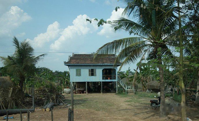 柬埔寨民居都是吊脚楼,和国内云南广西部分少数民族的楼很相像。只不过柬埔寨的吊脚楼的脚比较简单,看起来有点单薄。