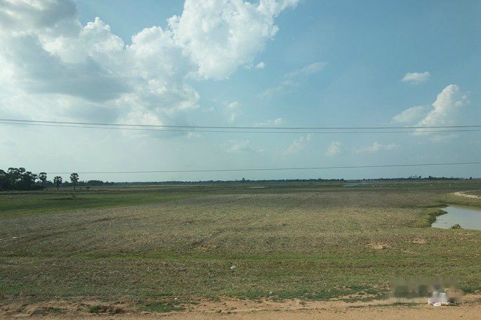 路过很多耕地都是空闲的,在柬埔寨这个农业国家,不应该有那么多荒地。推算了一下,这边的气候,水稻应该是三造,现在这个时间应该是第一造米刚收完的农闲时光。
