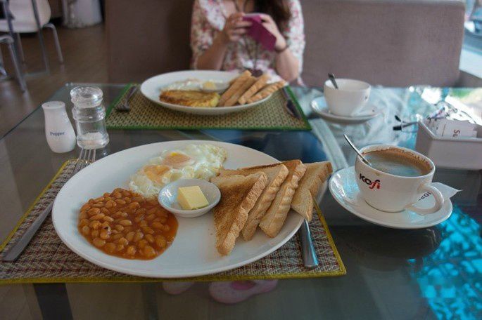 今天一早起来,就在附近找早餐。柬埔寨曾经是法国殖民地,据说面包做得很好,所以打算吃一份西式早餐,走到附近路口,看到一家名为Sebstian的餐馆装修不错,又有空调,就决定在这里吃早餐,于是吃了一份法式早餐,味道还不错,面包烤得不错。不过这家的价格有点贵,就不做推荐了。