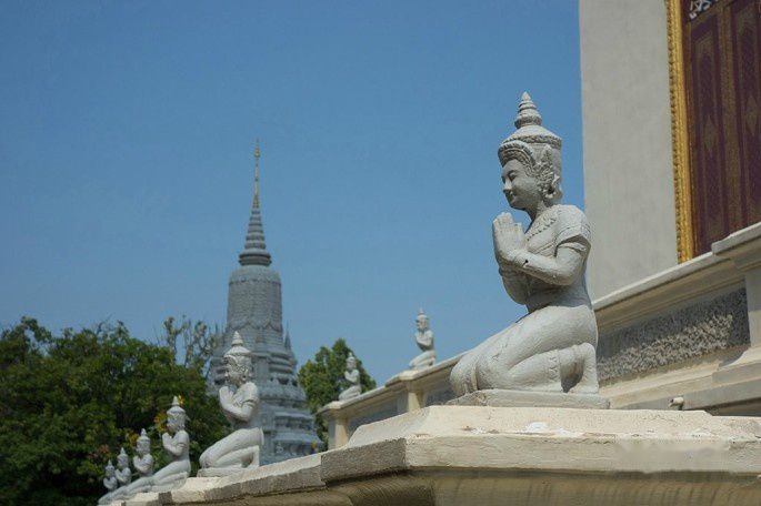 皇宫门票$6.5/人,过膝短裤和背心不能进入。进入银殿都需要脱鞋脱帽,把鞋脱在大门外的鞋架上。所有宫殿内均严禁照相。