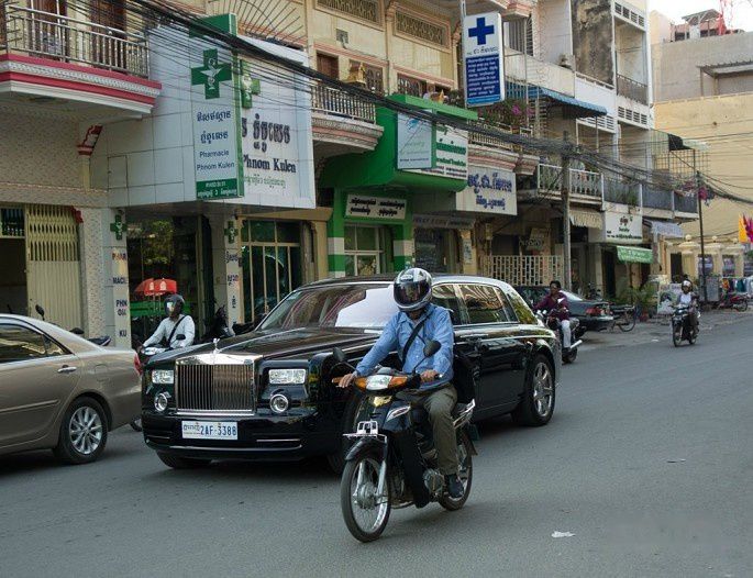 豪车出没请注意!虽说柬埔寨贫穷,但怎么说金边都是首都,豪车还是不少,只是这辆RR和街景有些不搭。