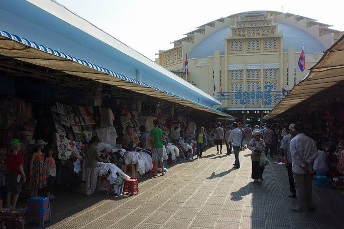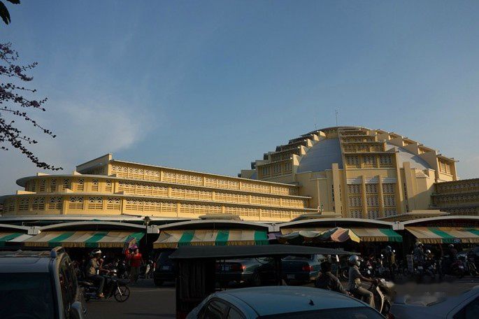 在皇宫门口排队的时候,和一位拉客的tuktuk司机聊了会,约好了皇宫出来坐他的车去中央市场,等我们逛完中央市场,再带我们回旅馆。我们大概4点20从皇宫出来,这哥们果然一直在等着我们,于是上tuktuk直奔中央市场,车费好像是2美刀。到了中央市场,那哥们说4点半到5点,在那边那个路口等我们,记得是这个路口哈(当然以上说的都是英文,没什么人会说中文的),说完这次的车钱都没收,就把车开过去了。不得不说柬埔寨人民太淳朴了,这事不太可能在中国发生。