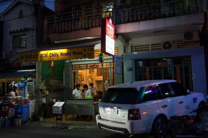 路虎揽胜绝对是柬埔寨土豪和权贵最爱的车型,在金边到处都能见到,暹粒也很多见。这排停车位我数了一下,就有5辆揽胜。