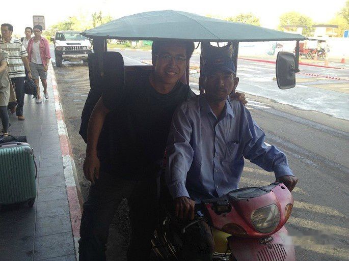 金边的机场也比较小,但旅客不少。离开柬埔寨前,和这趟的tuktuk司机留影纪念。这哥们和昨天那哥们一样,都很淳朴。