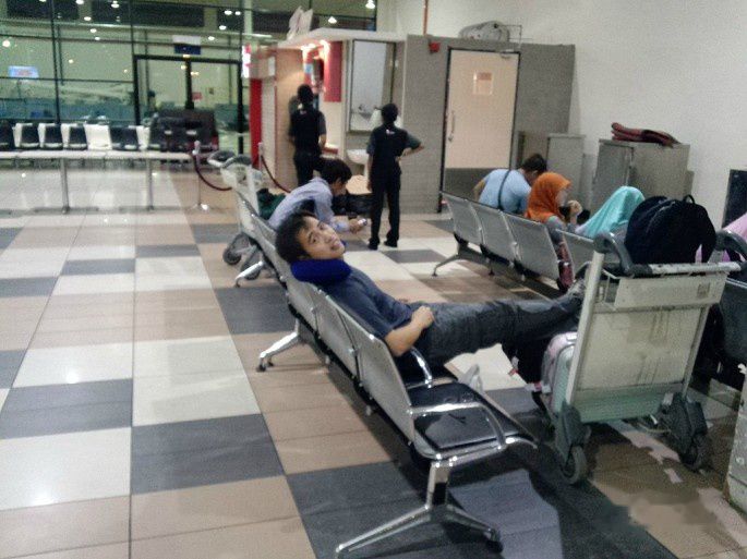 飞了3个半钟头,又到了熟悉的LCCT,听说亚航已经启用新机场了,LCCT不用,感慨一下。下机的时候已经晚上9点半了,一股热浪扑来,继续走了一大段到达大厅,办过境签什么的就略过了,很简单。这次过来发现LCCT的人不算多,不知道是不是马航事件的影响,中国游客少了,溜达了一阵,在门口简单吃了碗炒饭,吃完饭也快11点了,就准备去找位置睡觉。因为第二天一早6点50的飞机,所以计划是就在LCCT将就睡了。换了两个地方,最后在LCCT国内出发厅(肯德基)旁找到一排空凳子,就半坐半躺着开始睡了。我躺了半天,不太舒服没睡着,起来发现旁边有个中国人摸样的旅客。他很主动的找我交谈,不过他不会说中文,我也只能用蹩脚的英文和他聊。经过交流得知,原来他是马来西亚人,为壳牌工作,家乡在东马的沙捞越洲,这次就是乘机回家乡的。他英文挺流利,和我说了很多壳牌公司、液化天然气的东西,因为离他家乡近,还扯到了文莱,说这是一个很小但是非常富有的国家,还说他让家乡的儿子和女儿上中文学校,他们都能说中文,不象他一点不会。聊着聊着大家也累了,就睡了。没得躺,坐着睡真心难受,一晚上动来动去其实都没怎么睡着,睁开眼的时候5点,旁边那位马来友人不知道什么时候已经离去。