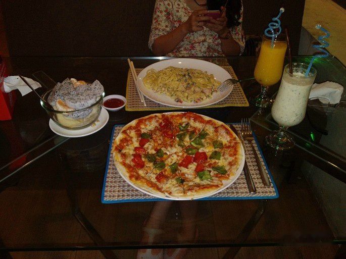 。老板娘人长得很漂亮,也很热情,见我们是中国人,还特意把餐厅的背景音乐换成了中文歌。不过我们却听不出是谁唱的,不知道是几线明星。其实我还是喜欢听当地的音乐,旅游嘛,要入乡随俗。老板娘不错,但晚餐的味道确实不怎么样,披萨都不香,价格也小贵,大家还是不用来这家吃晚餐了。