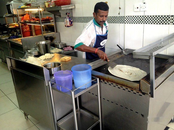 roti比较象烙饼,师傅在做roti。