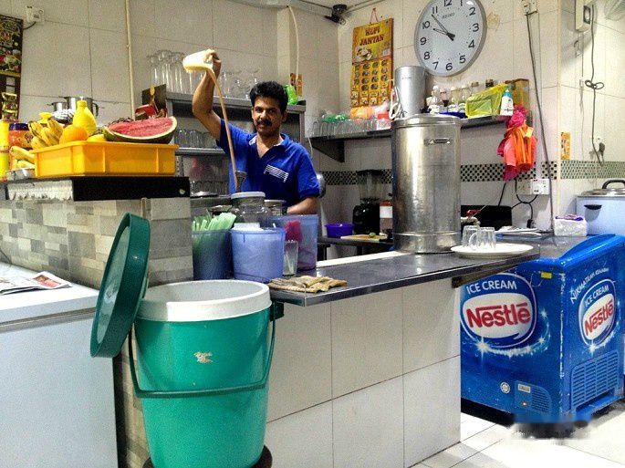 下午1点半的飞机,所以时间充裕,早上睡到自然醒,然后在周边寻觅吃早餐的地方,后来在monorail车站入口附近看中一家清真餐厅,有roti吃。上次来吉隆坡的时候吃过roti,觉得味道很不错。我们在这家点了香蕉roti和奶酪roti,好吃!