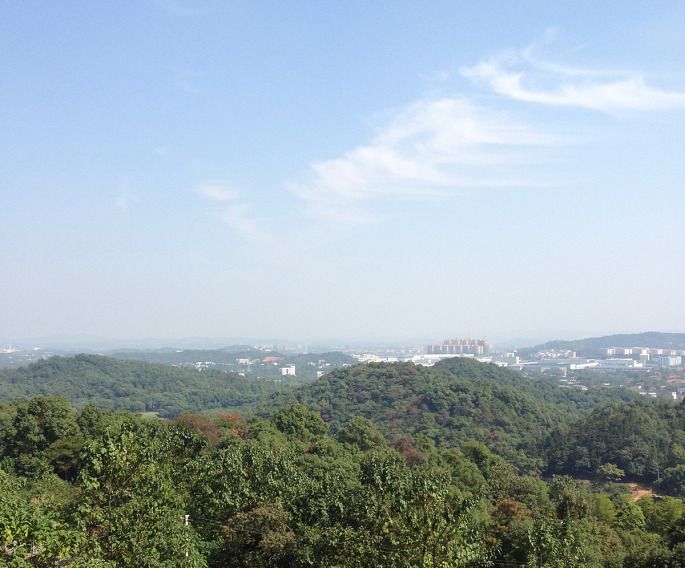 今天天气不错,空气能见度还可以,虽有太阳,但不毒,而且走几步就有树荫。