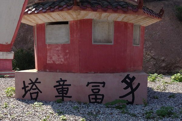 塔底有几个奇怪的字,既不像正规塔名,又不像游人涂鸦之作。而且字还少了一部分,费解。