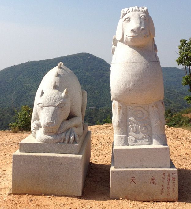 山顶有一些未完成的石像和石桌、石碑,也没有施工工人。