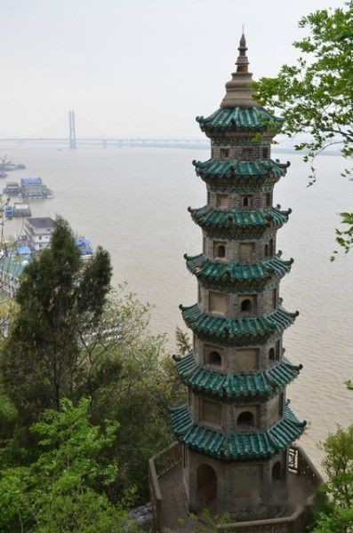 面临江边的塔。