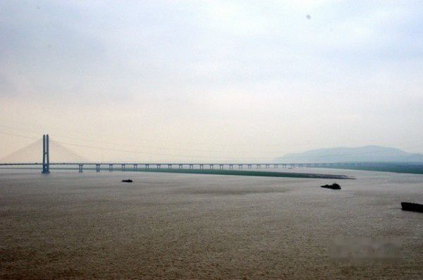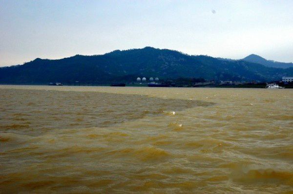 船行驶了大概二十多分钟,就来到了长江与鄱阳湖的交汇处。虽然都是混黄的颜色,但是界限还是非常分明。