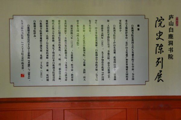 理学大师朱熹任南康(星子县)知军时,重建院宇,亲定教规,亲自讲学,并奏请皇上赐额,使书院发扬光大。