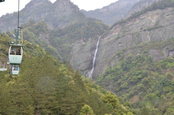 我们坐着缆车上秀峰,远远就可看到和体会李白写的诗句“遥看瀑布挂前川”的意境。