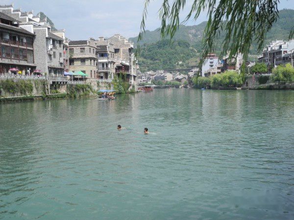 水向来特别能让人感到恬静,哪怕是瀑布般的激流声听着也会很舒服,只要有水的城市都会看到小孩在水里嬉戏打闹,西江是这样,镇远也是这样。这里的小孩不会像城市里的小孩每天除了上各种学习班就是电脑跟前打电玩,这里的小孩夏天都很充实开心,一群小孩在水里比跳水、比游泳,天天不亦乐乎,他们有着城里小孩少有的银铃般笑声、明亮的双眸、黝黑但健康的肌肤。这里的大人们同样过得悠闲,每天溜溜鸟,在河边亭子里睡个下午觉,一天也就过去了。你看着这里的生活总会不由自主的感叹城市到底给人们带来了什么,在这看似繁华的都市下,有多少人生活得满意,开心?又有多少人看似每天面带微笑实则早已如行尸走肉一般?小镇上的人们虽然钱赚得可能不如城市人多,也没有大都市那么多充实的娱乐物资条件,但他们可能过得真要比城里人开心满足很多,这样想来,每天奔波在城市之下拼命赚钱到底为了什么,真的值得吗?