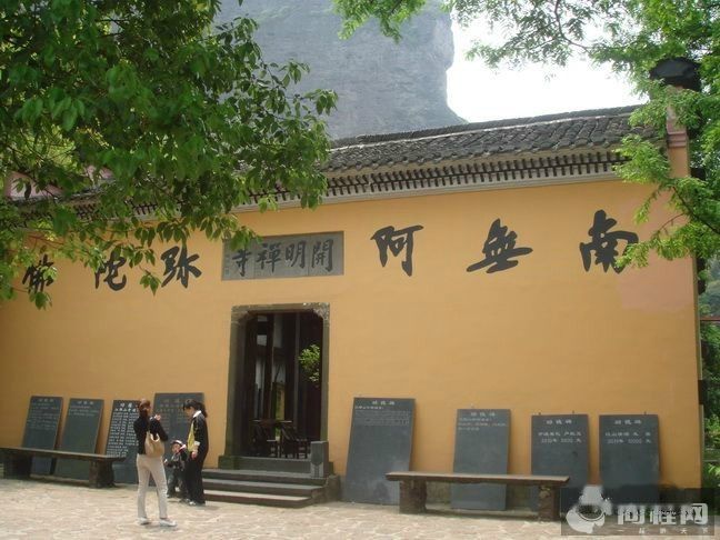 【开明禅寺】:开明禅寺始建于宋天禧二年(公元1018年),距今已有近千年的历史。世事沧桑,屡建屡毁,现在的寺庙重建于1990年。门墙上“南无阿弥陀佛”为弘一法师所留笔迹,“开明禅寺”四字是原全国政协副主席、佛教协会会长赵朴初所题。里面大雄宝殿供奉着佛主释迦牟尼佛,殿堂两侧是二十诸天,旁有观音殿。进寺可取一根香杆,上山有用